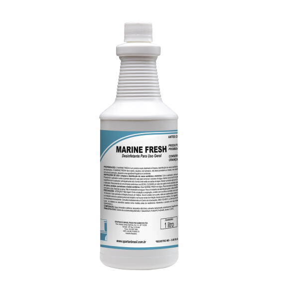 O Marine Fresh limpa e desinfeta em uma única operação. Não contém matérias-primas cáusticas, ácidas ou abrasivas, por essa razão não agride pisos cerâmicos, porcelanatos, sifões e encanamentos. Sua fragrância Algas Marinhas garante explosão de perfume e alta fixação. Além disso, possui ação comprovada frente às bactérias Staphylococcus Aureus e Salmonella Choleraesius.
